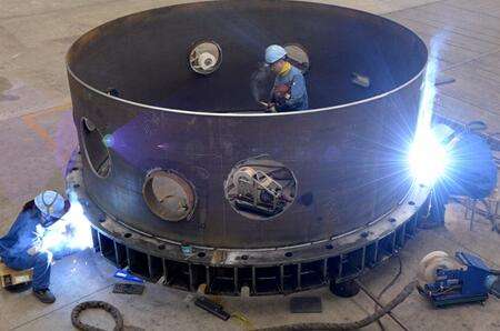 以壓力容器生產(chǎn)企業(yè)轉(zhuǎn)型升級(jí)為例。傳統(tǒng)的企業(yè)生產(chǎn)焊接車間,在一個(gè)工位上,總會(huì)看到一幕幕工人頭戴面罩、手握焊槍,在一個(gè)罐體內(nèi)進(jìn)行著焊接作業(yè),邊上還有一臺(tái)焊接設(shè)備,而且大部分都是一臺(tái)焊接設(shè)備需要至少兩個(gè)人配合著使用,一個(gè)人做操作,另外一個(gè)人要跟蹤焊道的焊接,看其是否偏離焊道。