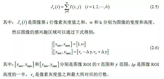 通過觀察圖像看出,激光條紋大致平行于圖像的u 軸,而且激光條紋處像素的灰度值高于圖像中其它像素的灰度值,所以圖像的ROI 可以通過對每行像素灰度值進行求和得到: