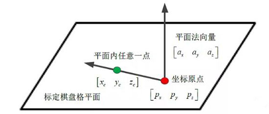 標定棋盤格平面內(nèi)任意一點與法向量關系: