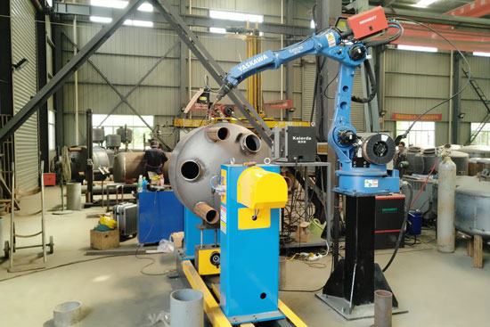 以壓力容器為例。大多數(shù)壓力容器都有一個(gè)噴嘴組件。由于焊接的技術(shù)特性,傳統(tǒng)上只用手工焊接,這是一個(gè)多道工序,涉及許多起止點(diǎn)和頻繁的重新定位。焊接噴嘴非??量?,對(duì)于焊工來(lái)說(shuō),坐在那里手工焊接噴嘴是一個(gè)巨大的工作任務(wù)。這就是使用機(jī)器人自動(dòng)化的好過(guò)程的原因之一。