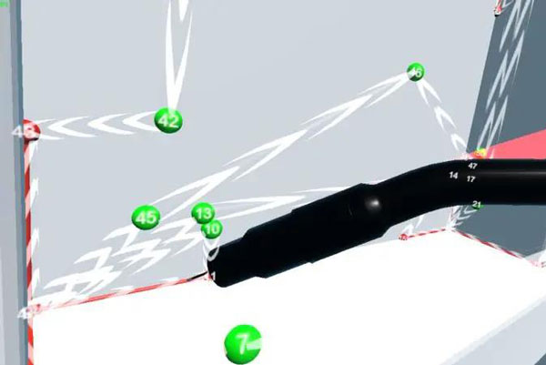 如圖4可以進(jìn)入工件內(nèi)部,通過vr技術(shù)可以觀看到工件內(nèi)部情況進(jìn)而確定焊槍的位置。