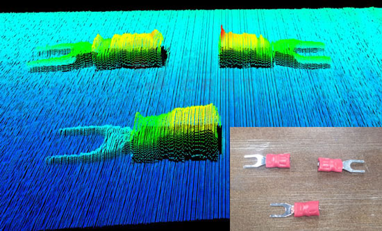 激光位移傳感器根據(jù)反射光的強度值來計算該表面輪廓,該反射光的強度值被傳輸?shù)轿恢妹舾械膫鞲衅髟?。即使增加了三維尺寸,目標(biāo)也可以在垂直于激光線的方向上移動,創(chuàng)建表面的三維圖像。