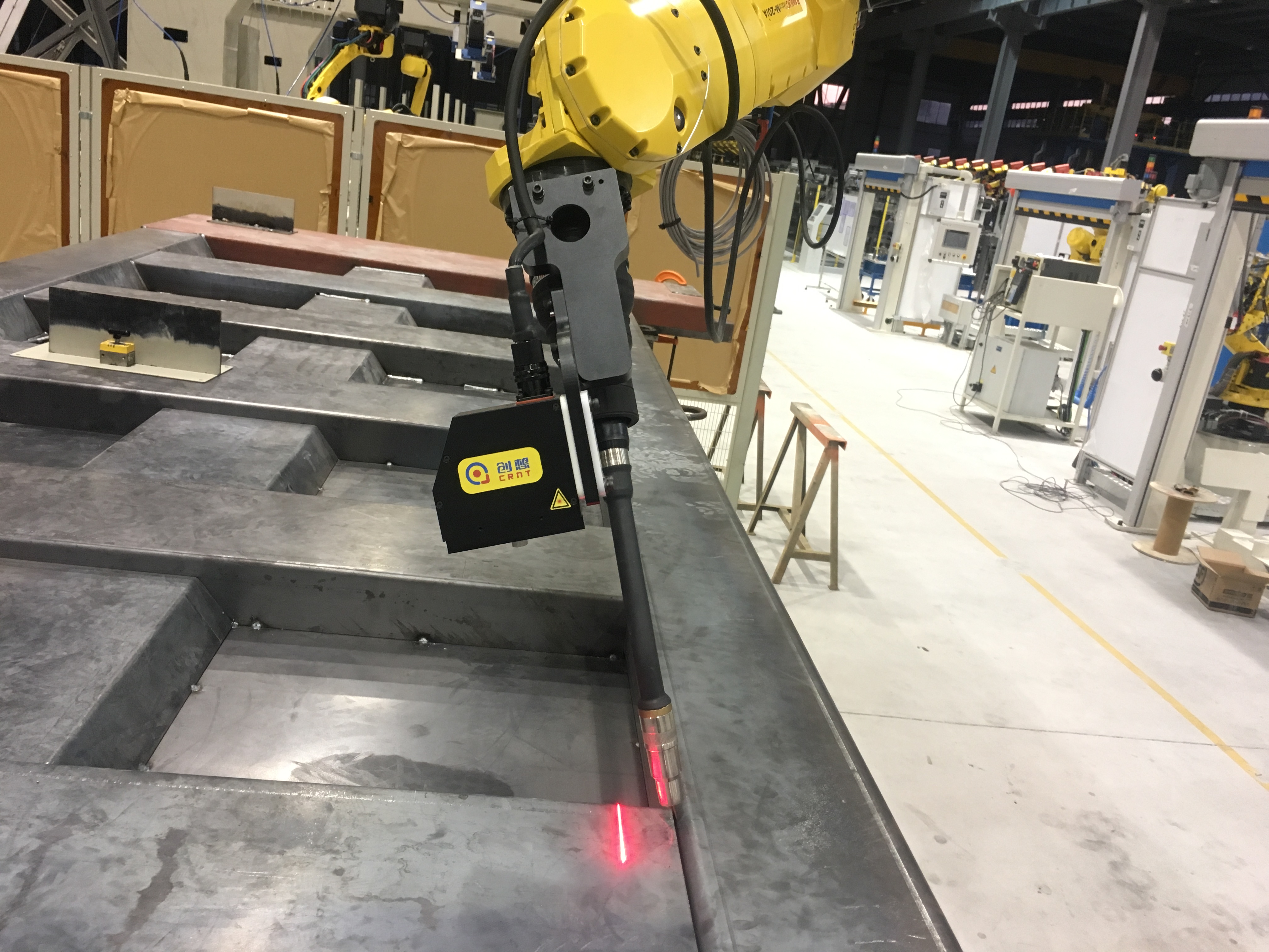 創(chuàng)想激光視覺焊縫跟蹤系統(tǒng),與工業(yè)機(jī)器人配套后,能夠在焊接時(shí)自動(dòng)檢測(cè)和自動(dòng)調(diào)整焊槍的位置(類似機(jī)器人的眼睛與大腦),使焊槍始終沿著焊縫進(jìn)行焊接,同時(shí)始終保持焊槍與工件之間的距離恒定不變,有效改善焊接質(zhì)量,提高生產(chǎn)效率。